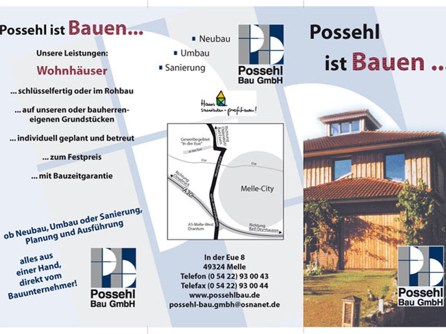 Überarbeitung des Werbeflyers des Bauunternehmens Possehl Bau GmbH aus Melle.
